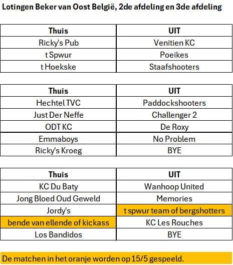 De loting voor de bekers is terug te vinden onderaan en werd uitgevoerd door Halil Eryigit van The Brothers.