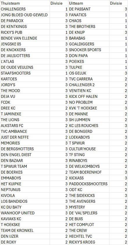 – Divisie 3 vs Divisie 2 → start bij 2-0 voor Divisie 3